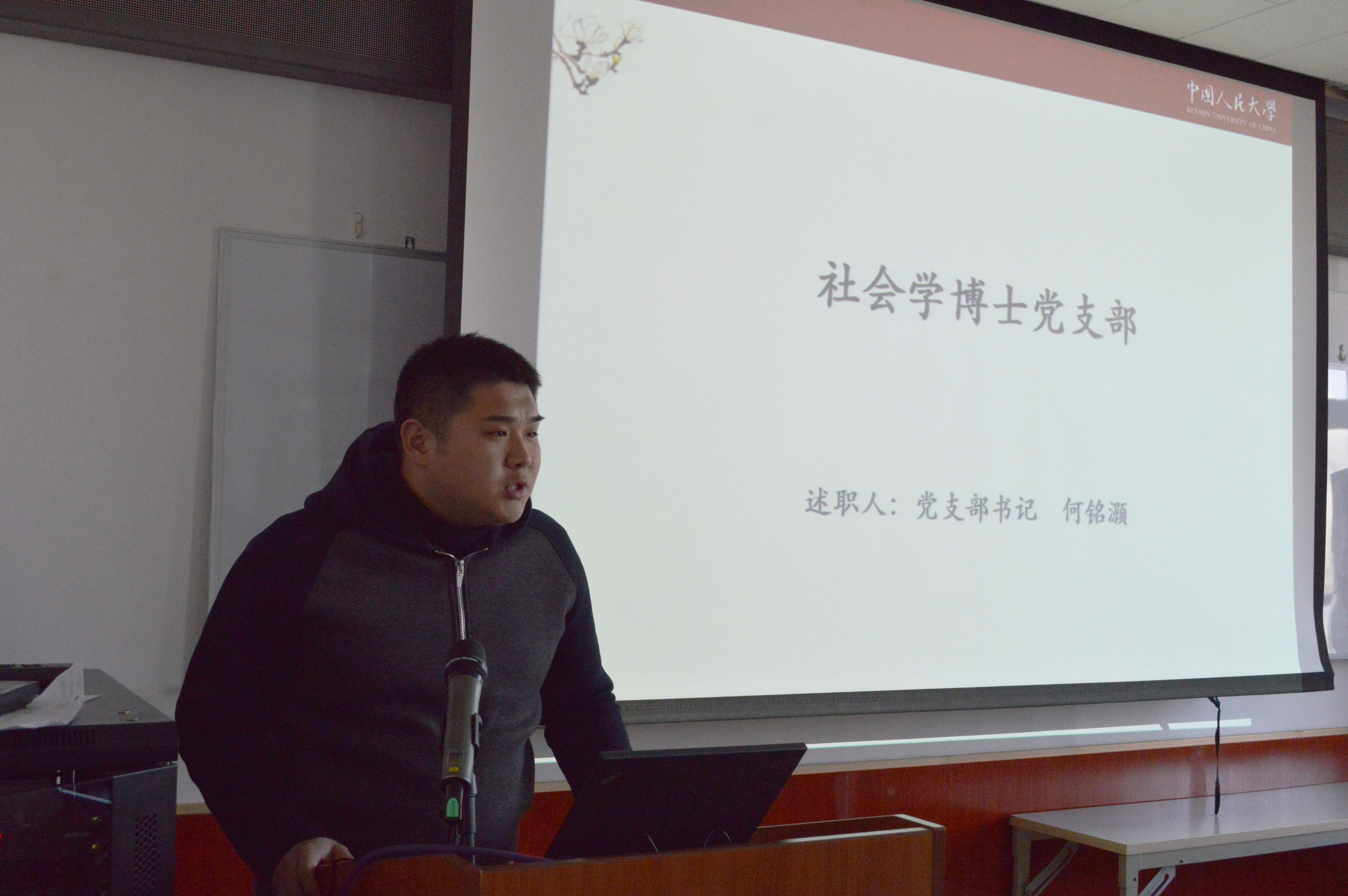 (2017级社会学硕士党支部杨钰晨进行述职)