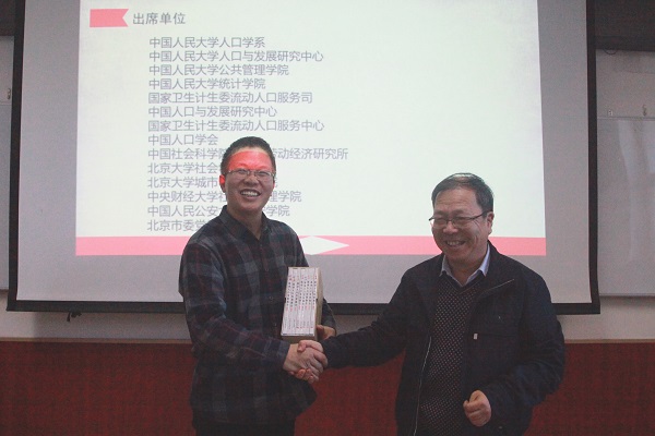 会议的最后一部分是自由发言环节,每单位各派一名代表发言。大家各抒己见,进一步深入讨论相关议题。侯佳伟教授认为流动人口与社会方方面面密不可分,人口研究新时期将要结合人口新趋势,以生育为主导转向为以人口变动为主导。邹湘江副教授以北京和东莞两个城市落户指标政策为例指出非户籍人口落户意愿低的问题。叶裕民教授在会议上解答了邹湘江副教授关于农民工落户意愿低的困惑,她认为大城市流动人口能否实现市民化是主要难题,这比是否能落户更加重要。国家卫计委流动人口中心副主任徐水源再一次强调了流动人口研究的重要性。蒋妍副教授则将发言的重点放在了流动人口养老医疗方面上。