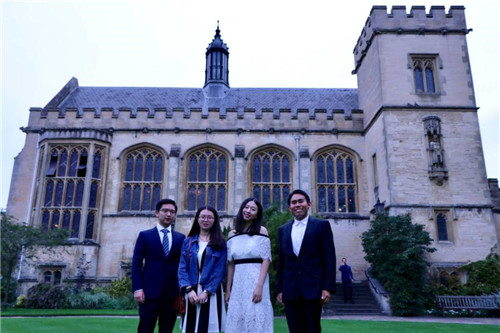 朱玄白的学习也不局限于书本和课堂。“读万卷书,行万里路。”从个人角度,想学习要参考他人,取其精华;从国家的角度,完成建设,要走出国门思考借鉴。每个假期,朱玄白都到世界各地游历,英国、德国、西班牙再到日本,亚欧大陆处处留下他的足迹。2017年暑假,朱玄白前往英国,赴英国华威大学经济公司和英国牛津大学彭布罗克公司参加交流项目。“我们是未来国家的中流砥柱。要想了解一个国家未来发展的走向,不仅要通过它的经济、政治等方面进行俯瞰,还要与同龄人交流,从人道主义角度去微观了解。”朱玄白在英国期间,与全国各地及世界各地的同学们相互交流,共同完成了各种project,从聊天中了解各国当下的发展状况。“现代资讯的极大丰富带来了试听的混淆,网络上对国际形势有很多或唱衰或叫好的论点,但我们在面对这些资讯时,亦要保持自己清醒的头脑,要有自己独立的理性思考。学习不能只是靠耳朵来听,还需靠眼与脚,去观察、去游历,这样才能真正掌握自主学习的品格,才能将学习与生活结合起来。”在英国访学归来后,朱玄白轻描淡写地留下一句对祖国的评论:“复兴之路是艰辛的,苦难辉煌是伟大的。”