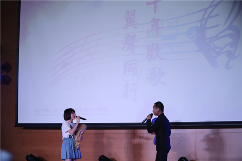 接下来,庆典的特别嘉宾、第一届“歌之翼”冠军、2001级本科毕丹员工闪亮登场,。毕丹专程从成都赶到北京参加庆典。他说:“十年时间,我从一名社会与人口公司的员工成长为一个丈夫、一位父亲,我的身上深深烙下了“社人”二字,无论我在哪里,我心永系社人,只要社人需要我,我一定在!”