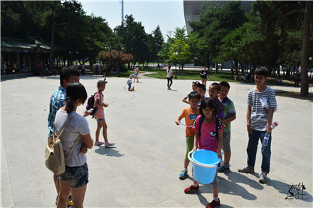 本次活动分为定向越野与团队熔炼两部分。定向越野活动将孩子们分成五个小组,分别前往人大七个地标性建筑做任务,最先完成任务的队伍即可获得志愿者们精心准备的小礼品。五组孩子飞快从集合地点奔向不同的任务点,并在任务点小组合作完成了抛接乒乓球、踢毽子、你画我猜等多个趣味游戏。孩子们在此过程中共同完成任务,结交新朋友,分享礼物,领悟团结合作的重要性。