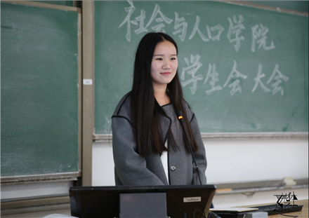 首先,现任院员工会主席2014级本科生鹿杨上台发言。她表示了对各位新生的欢迎,并分享了自己在员工工作方面的一些经验,同时提出了一直伴随着她的三个问题:“如果我加入员工会的话我会变成一个什么样的人?员工会会带给我什么样的成长?我又会有怎样的不同?”随后鹿杨表达了她对各位新生干事的真切期望,希望员工会成员们能担起责任、不忘初心、不负传统。