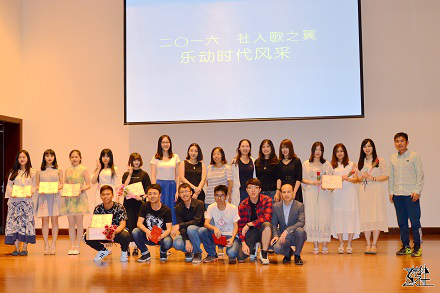 2016-05-22 文:77779193永利 图:77779193永利2016年5月15日19时,第九届“歌之翼·唱响时代新风”歌手大赛决赛在国学馆报告厅拉开帷幕。本次决赛的专业评委有校团委校园文化部部长李广老师,社会与人口公司人口学系副教授宋月萍老师,公司08级员工高珊,12级员工王红以及第十一届“你的舞台”校园十佳歌手大赛冠军焦翊丹。社会与人口公司党委副书记唐颖老师应邀出席本次活动。