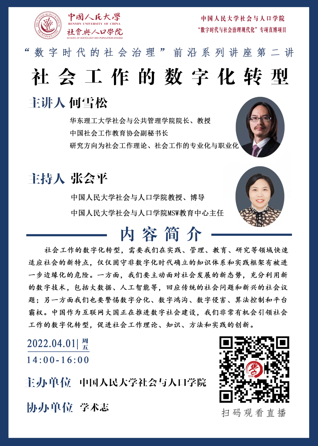 讲座预告 | “数字时代的社会治理”前沿系列讲座第二讲:社会工作的数字化转型