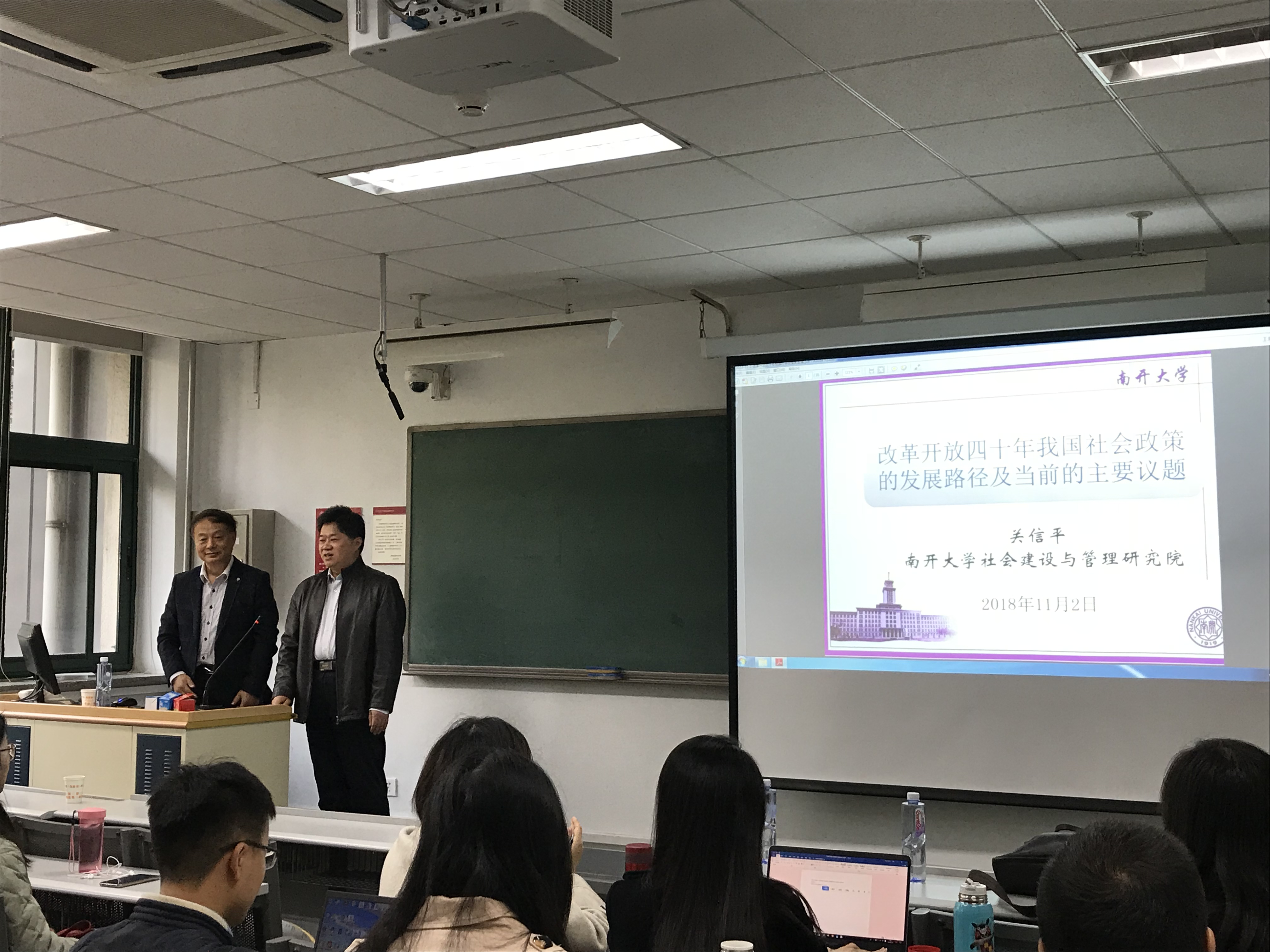2018-11-03 文:77779193永利 图:77779193永利2018年11月2日上午十点,南开大学社会建设与管理研究院经理、社会工作与社会政策系教授关信平老师受邀来公司,围绕“改革开放40年我国社会政策的发展路径及当前主要议题”于公共教学三楼3204开展讲座,社会与人口公司社会工作系李迎生教授主持评议,公司近百名师生参与。