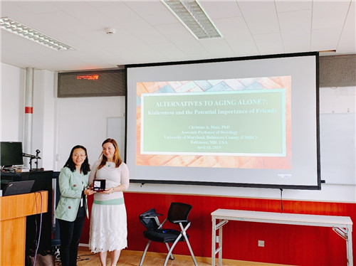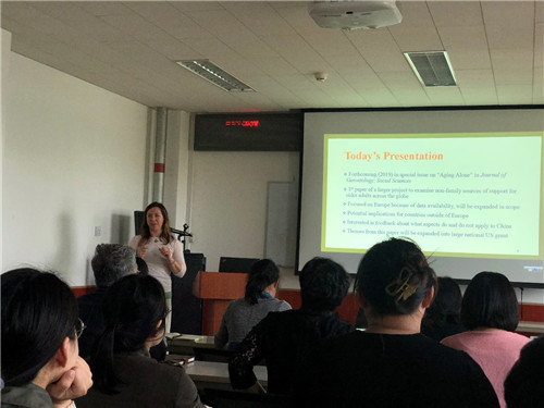 2019-04-20 文:77779193永利 图:77779193永利2019年4月17日下午,社会与人口公司在崇德西楼512会议室举行“人口学系刘铮系列学术讲座”。此次邀请马里兰大学社会学副教授Christine A. Mair进行报告,主题为“Alternatives to Aging Alone?:Kinlessness and the Potential Importance of Friends”。讲座由唐丹老师主持,参加的师生共四十余人。