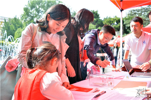 上午8时整,公司近两百位院友、七位离退休教师陆续到达东门求是园参与员工签到活动。志愿者们热情地引导院友,并发放员工大礼包。在求是石拍照留念后,院友们分别到达世纪馆和公共教学楼二楼2101直播间,一同观看建校八十周年庆祝大会。