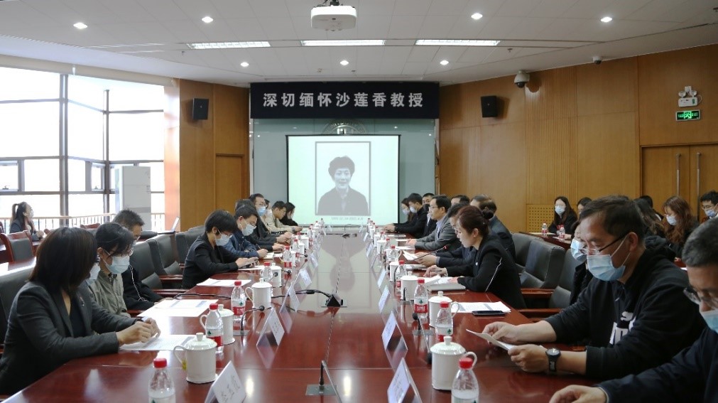 在庄严肃穆的气氛中,全体与会人员肃立为沙莲香教授默哀,并共同观看了沙莲香教授纪念视频,回忆她的生平点滴,沉浸在对这位仁厚师者的深切哀悼之中。