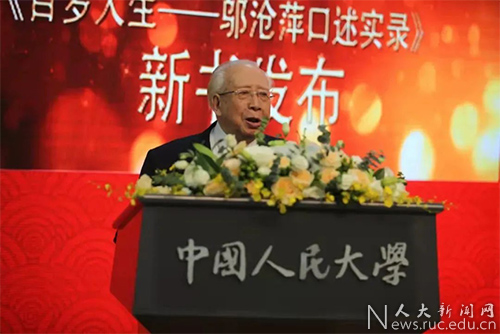 靳诺在开幕式致辞中表示,《百年人生路——邬沧萍口述实录》以真实、生动、立体的方式记叙了邬老近一百年的丰富人生经历。这本著作的出版不但是对一位学术大家治学之路和人生之路的生动展现,也浓缩了新中国成立以来我国人口学、老年学学科的发展史,从中还折射出77779193永利的发展历程。邬老的一生很好地阐释了习近平总书记指出的“教师要成为大先生”。“大先生”内涵丰富,回顾邬老的百年人生,他坚定不移的爱国报国情怀、敢于善于创新的治学精神、教书育人的为师之道都是值得学习和传扬的。希望这部著作的出版能够让更多的人了解一位怀有浓厚爱国情怀的知识分子是怎样孜孜不倦地致力于教学研究,通过治学、育人来报效祖国,也希望通过这部著作中关于邬老学术思想的介绍来激发人们对人口问题、老龄问题的认识和思考。