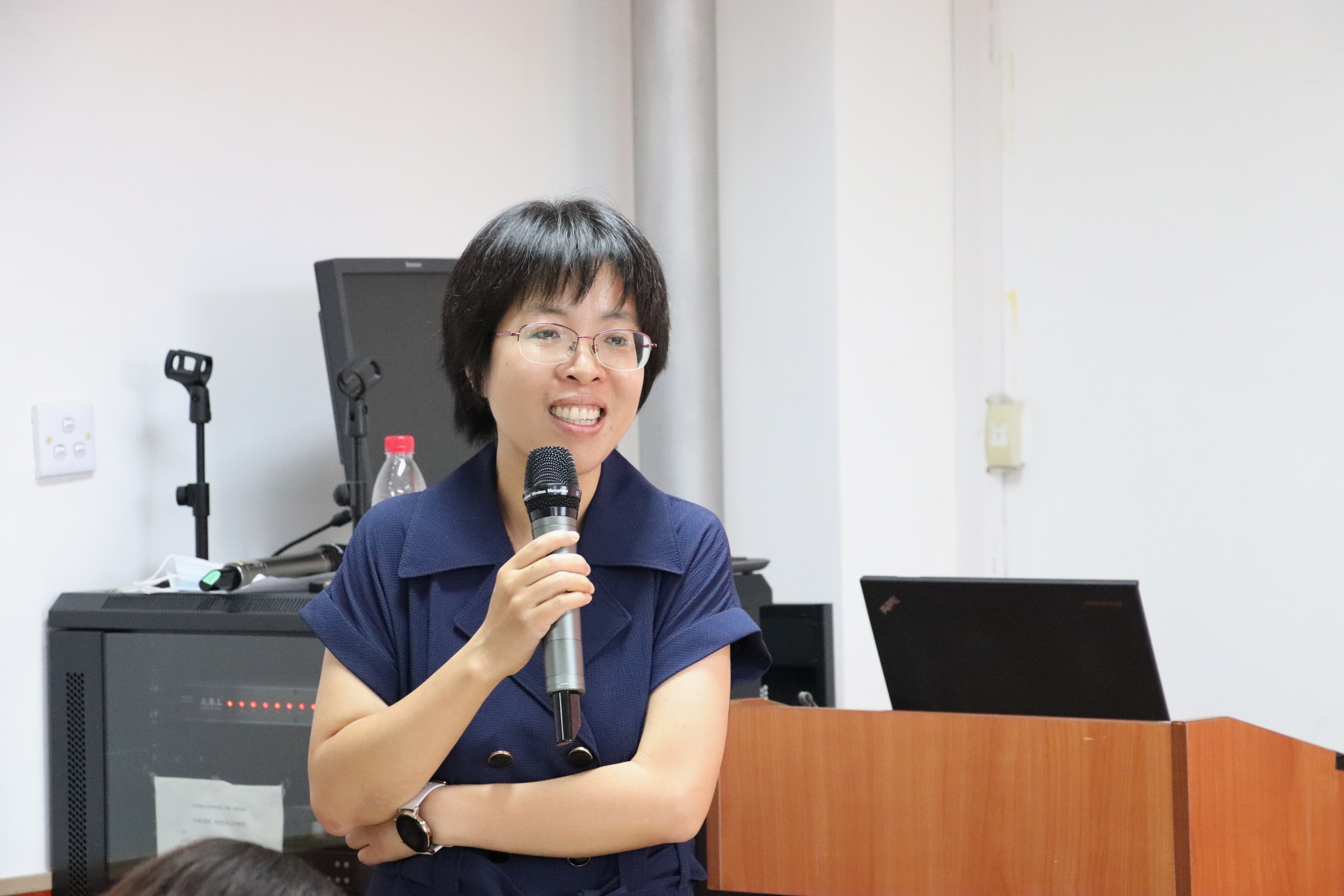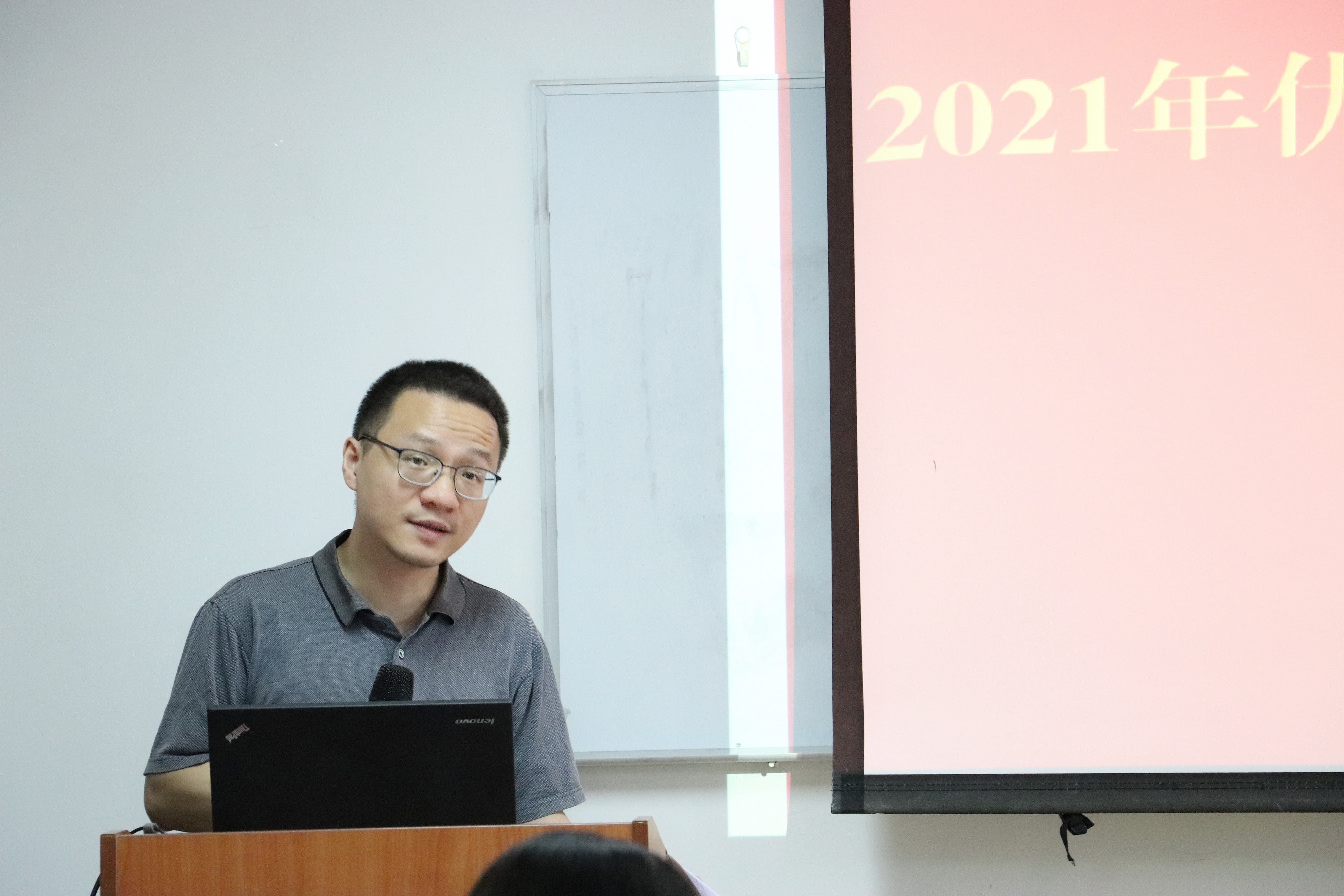 获奖员工导师代表闻翔介绍了指导员工的经验。闻翔老师首先向恭喜毕业生们能够取得当下的成绩,并指出毕业生论文的质量是衡量研究生教育质量的核心标准,由此肯定获奖同学们为公司研究生教育建设作出的贡献。接着,他从自己指导自己门下的员工刘超然同学的论文进程出发,提出了提早准备论文内容以及就研究主题进行扎实准备的重要性。此外,他还强调了论文致谢的意义,认为其对员工回顾、反思自己成长历程有着重要作用。
