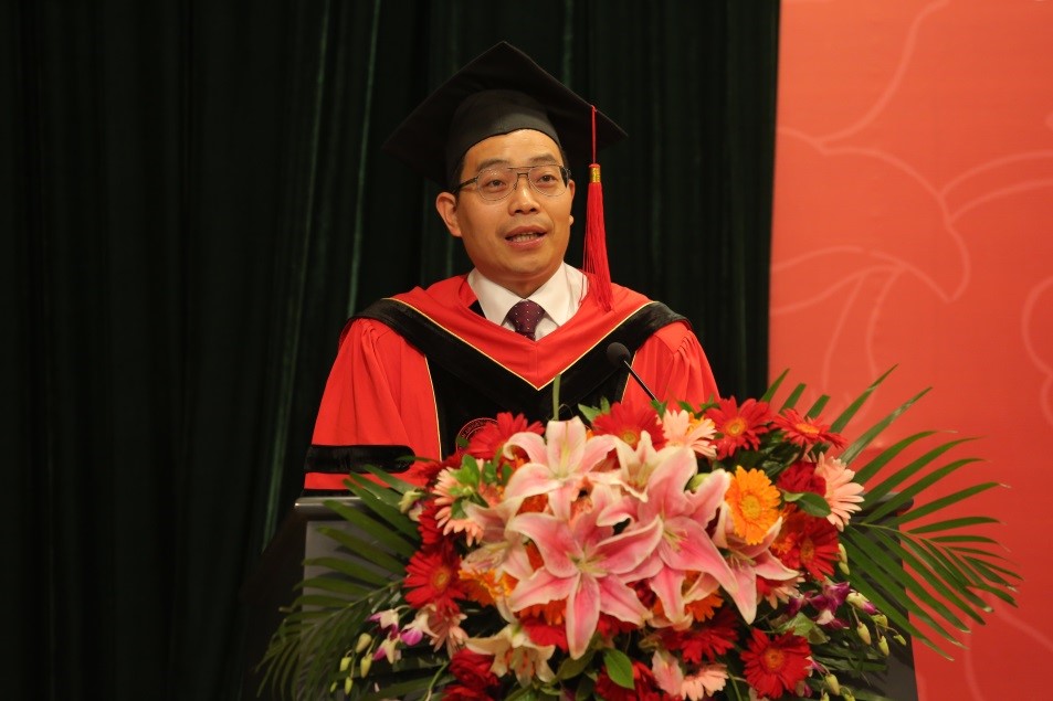 朱斌老师作为教师代表发言。他首先对大家顺利毕业表示祝贺。接下来,他用轻松幽默的话语分享了自己的人大时光。他嘱咐大家要坦然面对生活,努力做好身边事,不逃避、不抗拒。并祝愿大家未来长风破浪,快意人生。