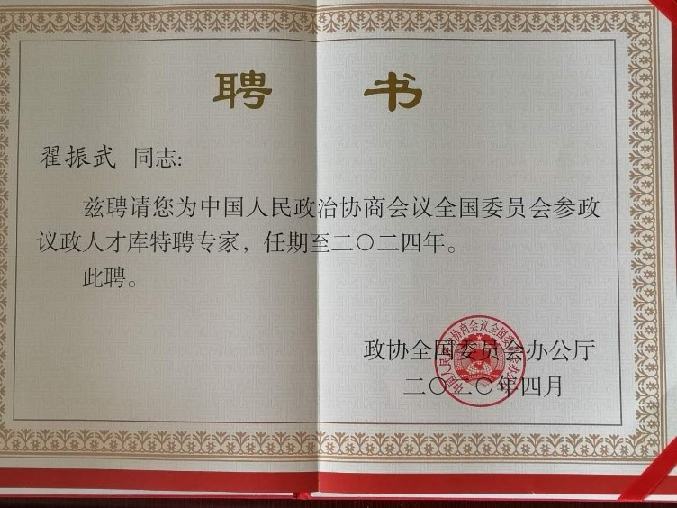 公司翟振武教授入选首批全国政协参政议政人才库特聘专家