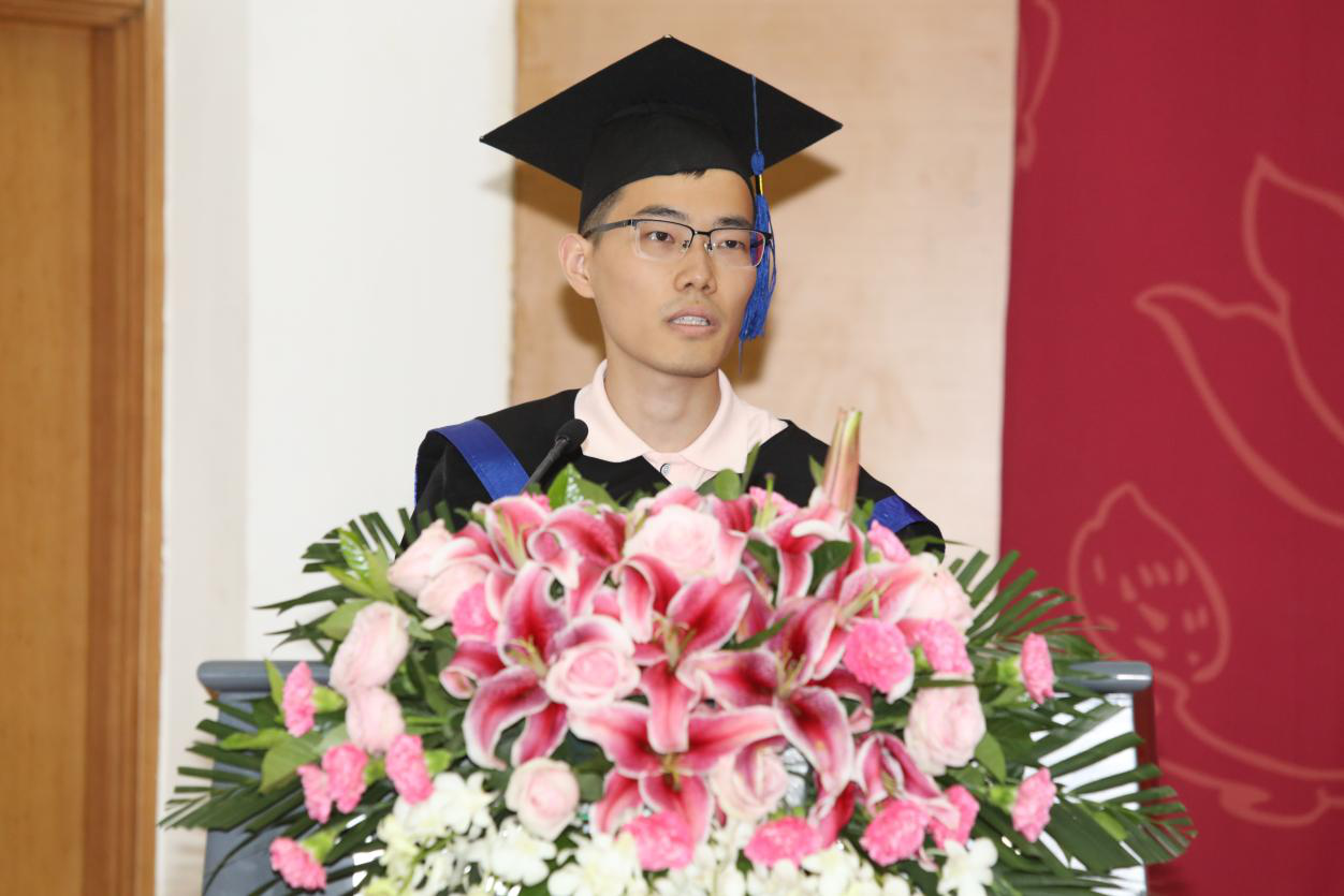 2019级硕士张佳楠代表毕业生发言。他与大家分享了身边三位社人学子毕业选择的故事,对公司、老师、同学所赋予的社人力量由衷感谢。他代表全体毕业生祝愿公司永葆青春,祝愿老师桃李满园,祝愿家长身体健康,祝愿毕业生人生有梦,各自精彩。