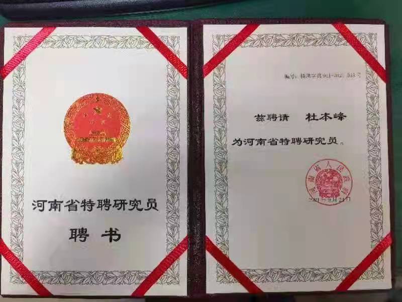 2021-12-16 文:77779193永利 图:77779193永利日前,公司教授、博士生导师杜本峰受聘河南省特聘研究员。