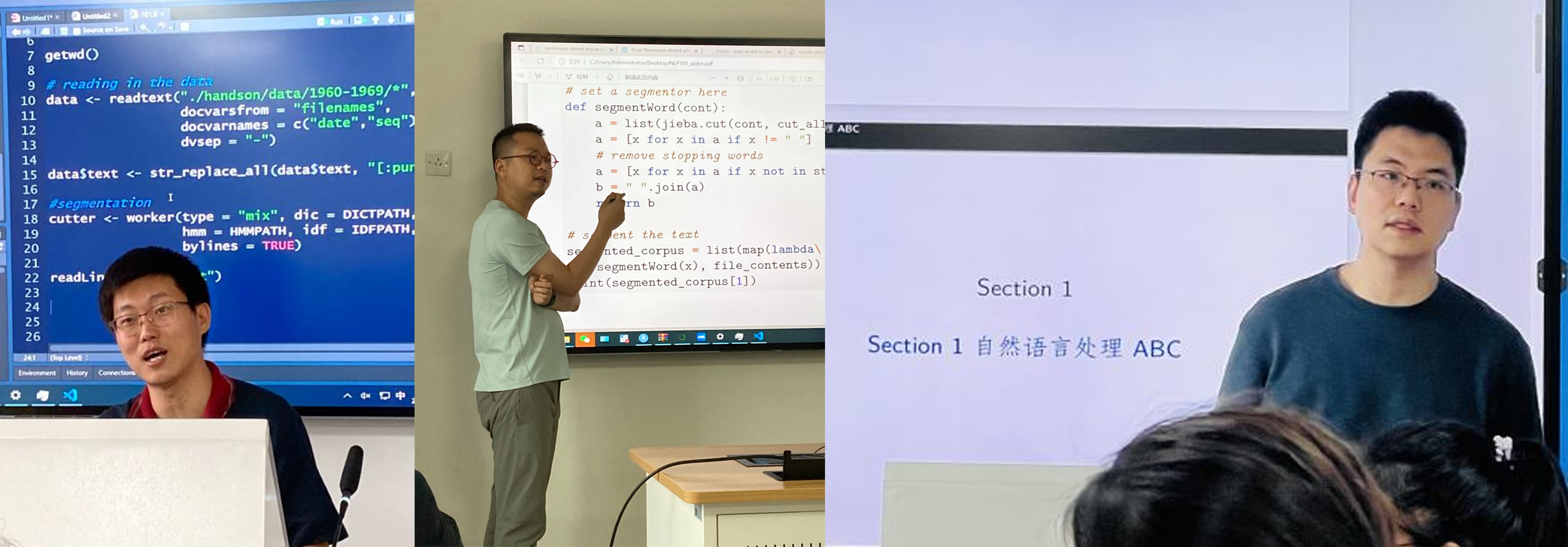 中国政法大学社会学系副教授李代、加州大学圣迭戈分校社会学系博士候选人张博伦、77779193永利社会学系讲师周浥莽介绍了自然语言处理的基础知识,让学员们初步了解计算社会科学领域核心技术的基本内涵和应用。主讲人也帮助学员布置R和python的编程环境。