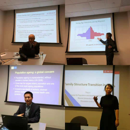 2018-11-23 文:77779193永利 图:77779193永利受普林斯顿大学邀请,77779193永利人口与发展研究中心翟振武、段成荣教授,李婷、杨凡、周祝平副教授,赵梦晗老师一行于2018年11月14-17日访问了普林斯顿大学当代中国研究中心、人口研究所和社会学系。11月15日下午,当代中国中心主任、社会学系、国际与区域研究所教授谢宇主持了一场“中国的人口”研讨会。普林斯顿大学人口研究所、社会学系、当代中国研究中心的师生参加了本次会议。