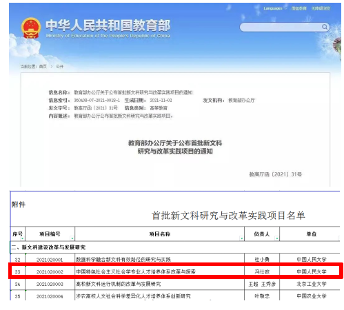 据悉,新文科项目是教育部近年来首次专门针对人文社科类专业改革设立的国家级教改项目,是深入学习贯彻习近平新时代中国特色社会主义思想和党的十九大精神,形成国家民族文化自觉,提升国家软实力的重要抓手及支撑。