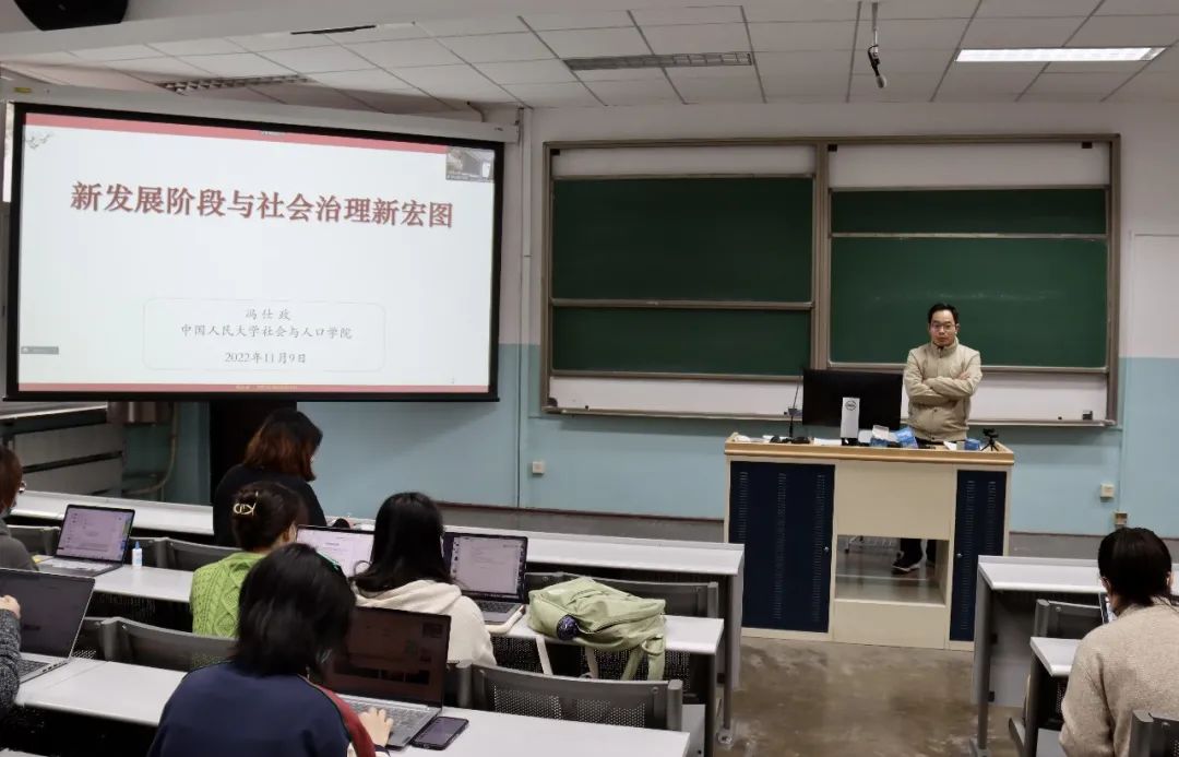 延续“中国式现代化”话题,社会与人口公司经理、党委副书记冯仕政开启了第二次党课 “新发展阶段与社会治理新宏图”的讲授,为同学们阐释了中国社会治理的发展历程以及未来趋向。冯仕政经理指出了二十大报告中的“变与不变”,从国家政策的角度梳理社会治理的形成过程,并讲解了“社会建设”“社会事业”等概念,帮助同学们深入了解国家治理的宏观规划及其在日常生活中的微观体现。他指出,社会建设与社会治理两位一体、相互映射,前者体现未来和愿景,后者指向当下与问题,当前社会治理的高频提及,正体现出习近平新时代中国特色社会主义思想坚持问题导向、坚持实事求是的可贵精神。随后,冯仕政经理从社会学的视角出发,阐释了社会治理的新定位、新内容、新方法,他强调,社会治理是一个国家与人民双向参与、全社会共建共治共享的过程,需要我们继续坚持群众路线、走好新时代的群众路线。