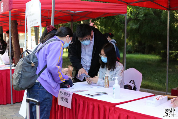 志愿者们在求是园和崇德楼满怀热情地值守,帮助本科新生进行注册和资料发放。社会与人口公司经理冯仕政、党委书记高燕燕、党委副书记唐颖、团委书记李桢、新生班主任张叶、张巍卓在迎新台前同2020级本科新生亲切交流。尽管2020级新生在踏入校园的时少了些许家长的陪伴,但仍有充满爱心的大朋辈们和乐于奉献的志愿者们于此守候,热情的帮助2020级新同学走好从校门到宿舍“最后一公里”。