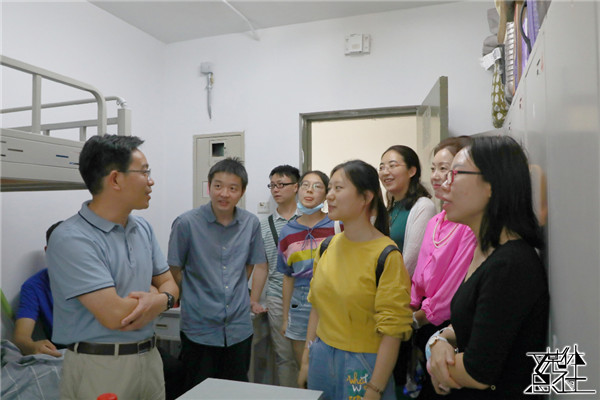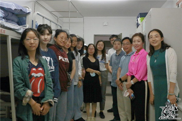 新生报到完毕后,社会与人口公司经理冯仕政、党委书记高燕燕、党委副书记唐颖、副经理黄家亮与新生班主任和辅导员一同前往宿舍看望新同学。在与同学的亲切交流中,冯仕政经理叮嘱同学们加强疫情防控,注意饮食安全与个人卫生;高燕燕书记建议新生们与自己的大朋辈和辅导员们保持密切联系,尽快适应人大的学习生活。