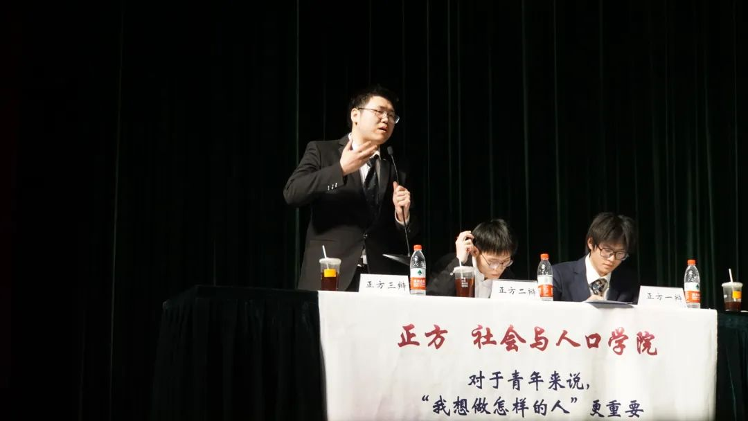 结辩环节里,三辩杜嘉川同学申明“我想做怎样的人”的重要性,在鼓励青年人大胆追梦、大胆追求人生所爱的同时,也为青年提供了一套以热爱为指引、一步步细化明确自身目标的成长方法论。最后,杜嘉川同学从社会、公司、家庭多个层次,给出了帮助青年找到目标、追逐目标的切实建议,以全场落幕的掌声,为比赛划上了完美的句号。