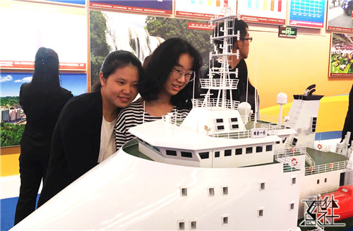 首先,在讲解员的引领下,一行人参观了以“践行新发展理念引领经济发展新常态”为题的经济建设展区,该展区向大家展示了十八大以来中国经济在工业,农业,航天航空,新兴技术产业以及一带一路等方面取得的伟大成就和雄厚的经济实力。我国在近年来不仅实现了“可上九天揽月,可下五洋捉鳖”的伟大梦想,更是在国际经济建设与合作中发挥了良好的带头作用。