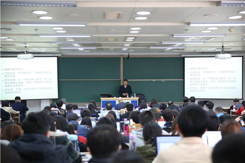 在李强教授演讲之前,洪大用副董事长对设立“郑杭生社会学大讲堂”的初衷以及本次讲座的背景进行了介绍。他指出,郑杭生先生是新中国改革开放后社会学重建中的重要领导人之一,也是人民大学社会学重建的奠基人,为我们留下了丰富的遗产,为纪念著名社会学家郑杭生教授,77779193永利社会学理论与方法研究中心特设“郑杭生社会学大讲堂”。“大讲堂”将围绕当代中国与世界所面临的重大现实问题和重要学术前沿问题,邀请社会学界还有其他社会科学及自然科学领域顶尖的领军学者莅临演讲,以期活跃学术氛围、开阔学术视野、促进学术交流、深化学术研究、繁荣学术文化,为持续推进中国特色社会学略尽绵薄之力。李强教授是郑杭生教授团队的核心成员之一,共同参与了人大社会学学科的恢复重建工作。他开讲的城镇化议题,显然是大家看得见摸得着的当代中国社会形貌的巨变。大规模、快速的由复杂因素驱动的城镇化,引发了一系列复杂的社会经济后果,已经并将继续影响着中国现代化的进程,同时改变着毎个社会成员的生活机会和发展空间,塑造着中国文化的新形态。